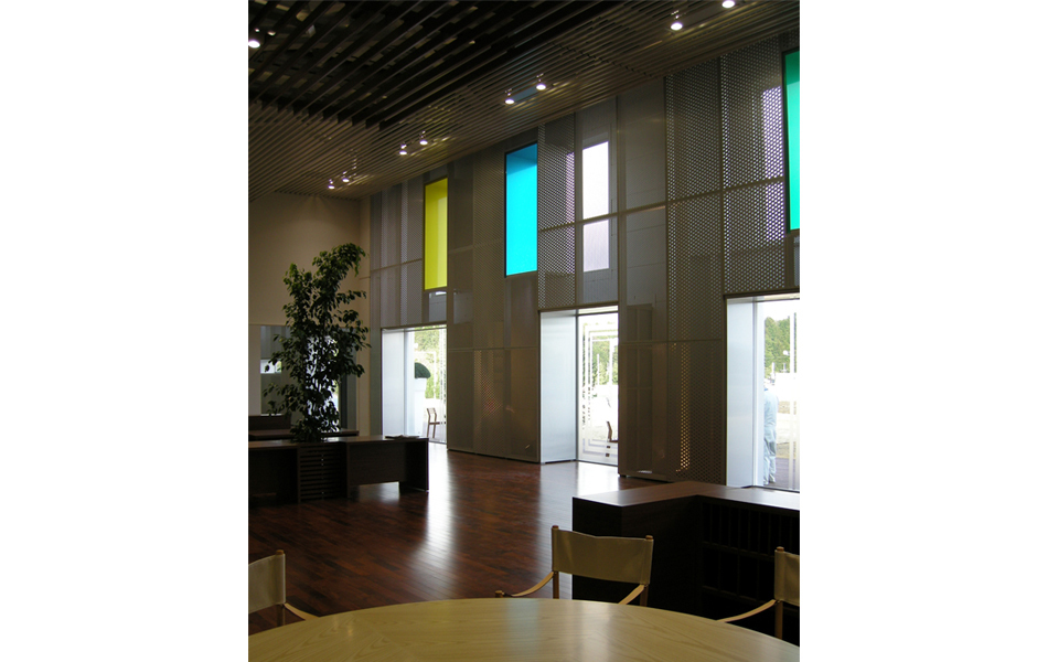 廊下を挟んで北側に各研究室などを配置し、2階には南側に風景を望める大会議室などを計画した。
